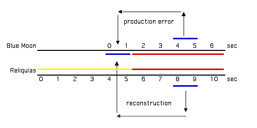 ![]() There is definitely something wrong with the Blue Moon version, somehow it just doesn't make sense as a start (although one seems to get used to if after listening a few times). I already apologize to leave now the musical experience and take up the scalpel, but in this context we must spend some time on this. I strongly believe that something went terribly wrong during the preparation of this track for the Blue Moon edition. Was it the needle wildly jumping around on a 78 rpm record ? Impossible to say now and here, but the introduction got severely messed up (hopefully, not intentionally). It is quite easy to reconstruct the Blue Moon version with bits and pieces from the Reliquias edition. Again the introduction from the Blue Moon edition (about 7"), followed by the corresponding part in my reconstruction... Play