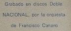 Con Tu Voz, Querida (tango) Composer: Francisco de Caro Lyrics: José M. Suñé ![]() Grabado en disco Victor por JULIO DE CARO y su Orquesta Típica Undocumented. The record numbering system of Víctor does not allow the same conclusion as for another missing De Caro recording. |