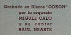 (tango) Composer: Elias Randal Lyrics: Julian Centeya ![]() Grabado en Discos "ODEON" por la orquesta de MIGUEL CALO y su cantor RAUL IRIARTE The Caló recording remains undocumented. |